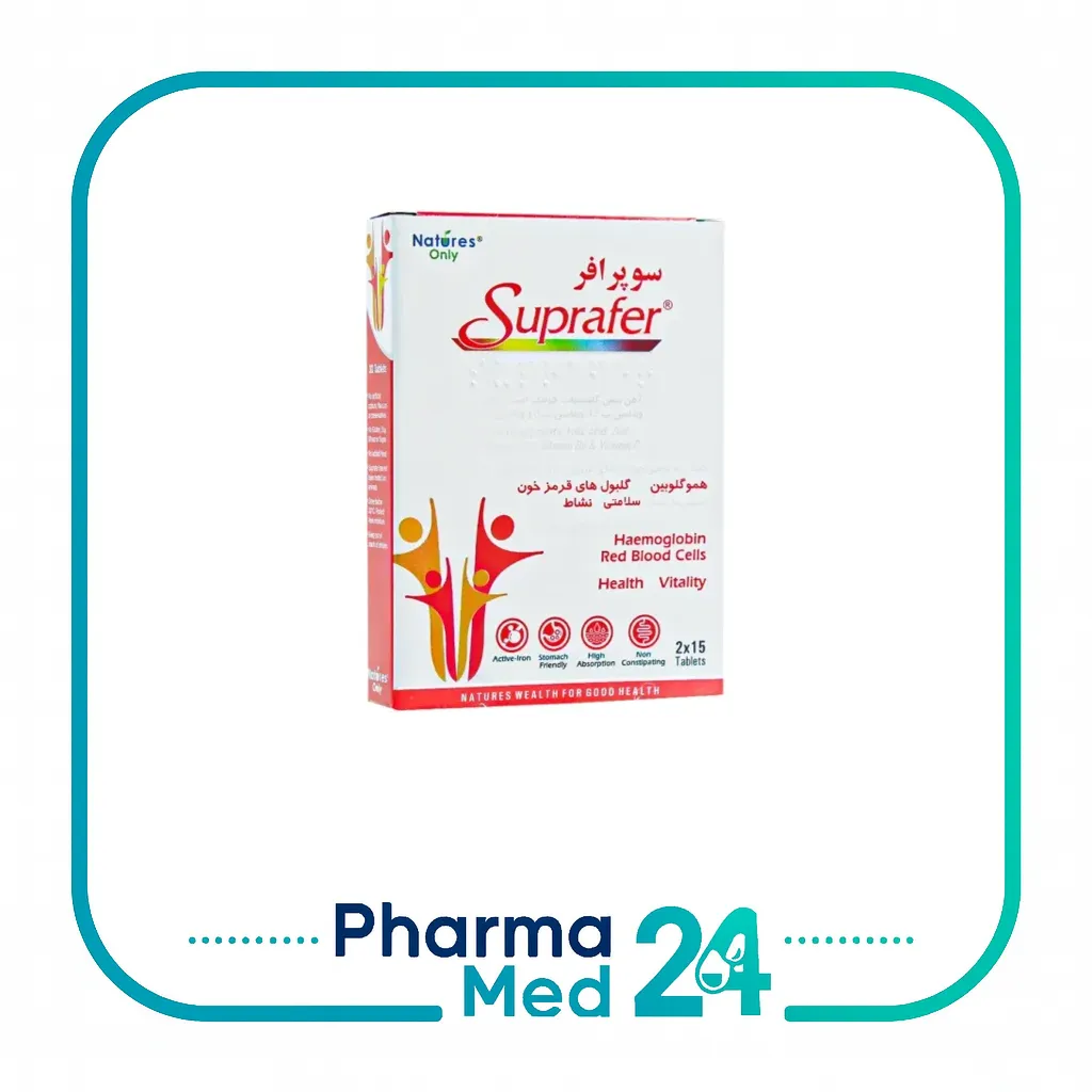 {‘نقد و بررسی’: ‘قرص سوپرافر نیچرز اونلی با فرمولاسیونی خاص شامل آهن بیس گلیسینات، فولیک اسید، زینک، ویتامینu200cهای ب12، ب6 و ویتامین سی طراحی شده است تا نیازهای مختلف بدن برای تقویت سیستم ایمنی و افزایش انرژی را برآورده کند. آهن بیس گلیسینات موجود در این محصول به دلیل جذب بالای خود، بدون ایجاد عوارض گوارشی، به ویژه برای افرادی که از کمبود آهن رنج میu200cبرند، مناسب است. این مکمل علاوه بر تقویت سیستم ایمنی، به افزایش هموگلوبین خون و جلوگیری از مشکلات مربوط به کمu200cخونی مانند خستگی و ضعف کمک میu200cکند.’, ‘ویژگی ها’: ‘سوپرافر نیچرز اونلی با هدف تامین مواد مغذی ضروری برای تشکیل هموگلوبین در گلبولu200cهای قرمز و افزایش انرژی سلولu200cها طراحی شده است. این محصول با زینک و فولیک اسید ترکیب شده تا به جذب بهتر آهن و جلوگیری از فقر فولات کمک کند. مصرف منظم این مکمل میu200cتواند از فقر آهن جلوگیری کرده و به ویژه برای بانوان در دوران قاعدگی مفید باشد. قرص سوپرافر در بسته بندی 30 عددی توسط شرکت کیش مدیفارم تحت لیسانس بایو پلاس لایف ساینس تولید میu200cشود و با تخفیفu200cهای دورهu200cای در داروخانه آنلاین مثبت سبز به فروش میu200cرسد.’, ‘چطور مصرف کنیم’: ‘برای مصرف قرص سوپرافر نیچرز اونلی، روزانه یک قرص یا طبق توصیه پزشک، با یک لیوان آب مصرف شود. از خرد کردن یا جویدن قرص خودداری کنید. این محصول برای کودکان زیر 12 سال مناسب نیست و در دوران بارداری و شیردهی باید با احتیاط و تحت نظر پزشک مصرف شود. در صورت حساسیت به هر یک از ترکیبات، از مصرف آن خودداری کنید و اگر به بیماریu200cهای خاصی مبتلا هستید، پیش از استفاده با پزشک مشورت نمایید.’}